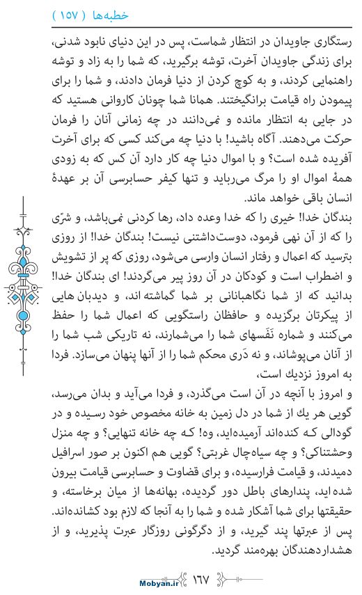 نمایش نهج البلاغه - خطبه : 157 - تشویق به پرهیزکاری