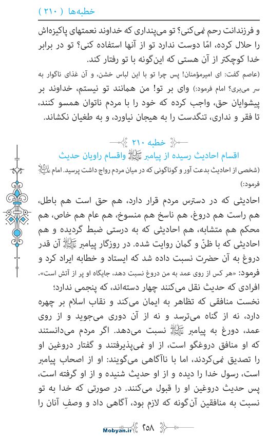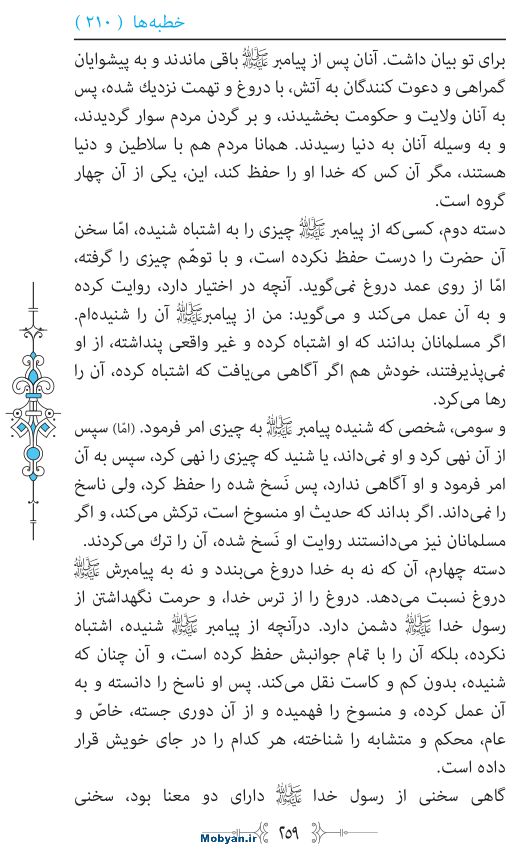 خطبه : 210 - در باب حدیث های مجعول